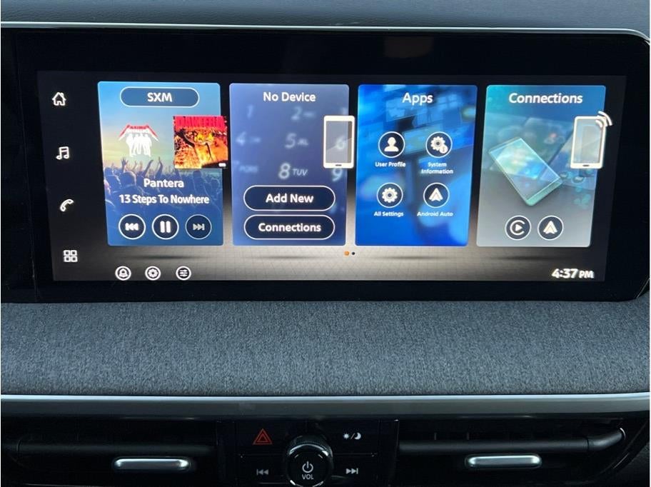 - Radio: AM/FM/SiriusXM Audio System -inc: 12.3" color touchscreen display w/4 speakers, Bluetooth® hands-free phone system, streaming audio via Bluetooth®, NissanConnect featuring wireless Apple CarPlay, wireless Android Auto, Siri eyes free and hands-free text messaging assistant, audio and Bluetooth® steering wheel switches