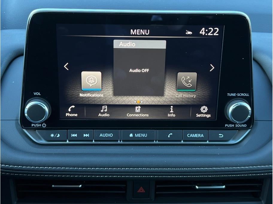 - Radio: AM/FM NissanConnect -inc: 6 speakers plus 2 tweeters, Apple CarPlay, Android Auto, 8" color touch screen display, Bluetooth®, 2 front USB type-C, Wi-Fi hotspot and NissanConnect Services powered by SiriusXM