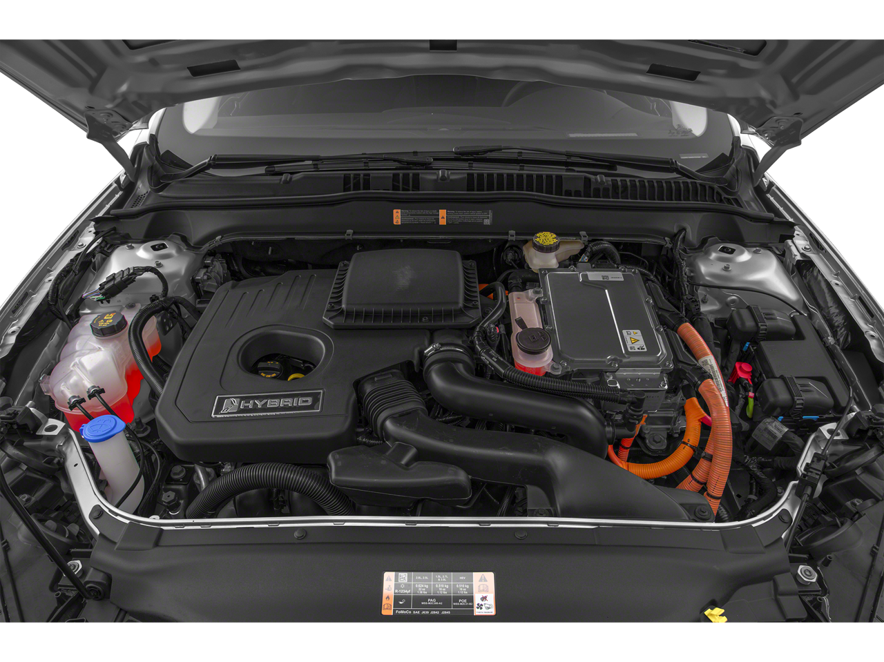 I4 Hybrid, 4-Wheel Disc Brakes, 9 Speakers, ABS brakes, Air Conditioning, Alloy wheels, AM/FM radio: SiriusXM, AppLink/Apple CarPlay and Android Auto, Auto High-beam Headlights, Auto-dimming Rear-View mirror, Automatic temperature control, Brake assist, Bumpers: body-color, Cloth Front Bucket Seats, Compass, Delay-off headlights, Driver door bin, Driver vanity mirror, Dual front impact airbags, Dual front side impact airbags, Electronic Stability Control, Emergency communication system: 911 Assist, Equipment Group 550A, Exterior Parking Camera Rear, Four wheel independent suspension, Front anti-roll bar, Front Bucket Seats, Front Center Armrest, Front dual zone A/C, Front License Plate Bracket, Front reading lights, Fully automatic headlights, Illuminated entry, Knee airbag, Lane Departure Warning System, Low tire pressure warning, Navigation System, Occupant sensing airbag, Outside temperature display, Overhead airbag, Overhead console, Panic alarm, Passenger door bin, Passenger vanity mirror, Power door mirrors, Power driver seat, Power passenger seat, Power steering, Power windows, Radio data system, Radio: AM/FM/MP3 Stereo, Rain sensing wipers, Rear anti-roll bar, Rear Parking Sensors, Rear reading lights, Rear seat center armrest, Rear window defroster, Remote keyless entry, Security system, Speed control, Speed-sensing steering, Speed-Sensitive Wipers, Split folding rear seat, Steering wheel mounted audio controls, SYNC 3 Communications & Entertainment System, Tachometer, Telescoping steering wheel, Tilt steering wheel, Traction control, Trip computer, Variably intermittent wipers, Wheels: 17 Sparkle Silver-Painted Aluminum, I4 Hybrid.