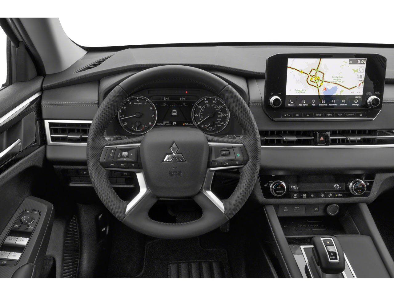 3rd row seats: split-bench, 4-Wheel Disc Brakes, ABS brakes, Air Conditioning, Alloy wheels, AM/FM radio: SiriusXM, Android Auto & Apple CarPlay, Auto High-beam Headlights, Automatic temperature control, Axle Ratio: 5.694, Brake assist, Bumpers: body-color, Driver door bin, Driver vanity mirror, Dual front impact airbags, Dual front side impact airbags, Electronic Stability Control, Emergency communication system: Mitsubishi Connect w/ 24-month trial, Four wheel independent suspension, Front anti-roll bar, Front Bucket Seats, Front Center Armrest w/Storage, Front dual zone A/C, Front fog lights, Front reading lights, Fully automatic headlights, Heated door mirrors, Heated Front Bucket Seats, Heated front seats, Illuminated entry, Knee airbag, Leather Shift Knob, Leather steering wheel, Low tire pressure warning, Navigation system: Powered by TOMTOM, Occupant sensing airbag, Outside temperature display, Overhead airbag, Overhead console, Panic alarm, Passenger door bin, Passenger vanity mirror, Power door mirrors, Power driver seat, Power Liftgate, Power steering, Power windows, Radio data system, Radio: AM/FM 9.0 Navigation w/Smartphone Link, Rain sensing wipers, Rear anti-roll bar, Rear seat center armrest, Rear side impact airbag, Rear window defroster, Rear window wiper, Reclining 3rd row seat, Remote keyless entry, Security system, Speed control, Speed-Sensitive Wipers, Split folding rear seat, Spoiler, Steering wheel mounted audio controls, Synthetic Leather Seat Trim, Tachometer, Telescoping steering wheel, Tilt steering wheel, Traction control, Trip computer, Turn signal indicator mirrors, Variably intermittent wipers, Wheels: 20 x 8J Two-Tone Alloy.