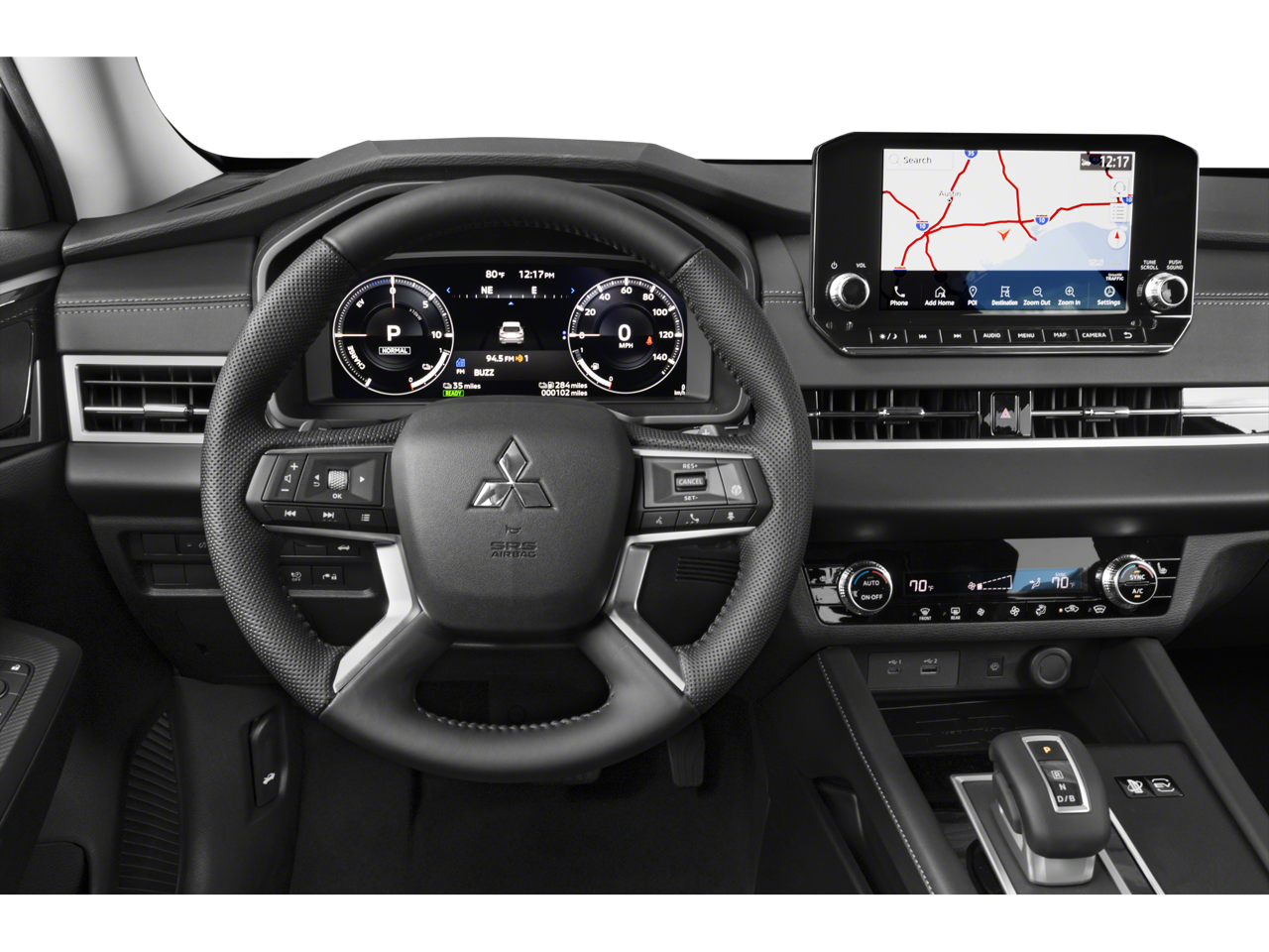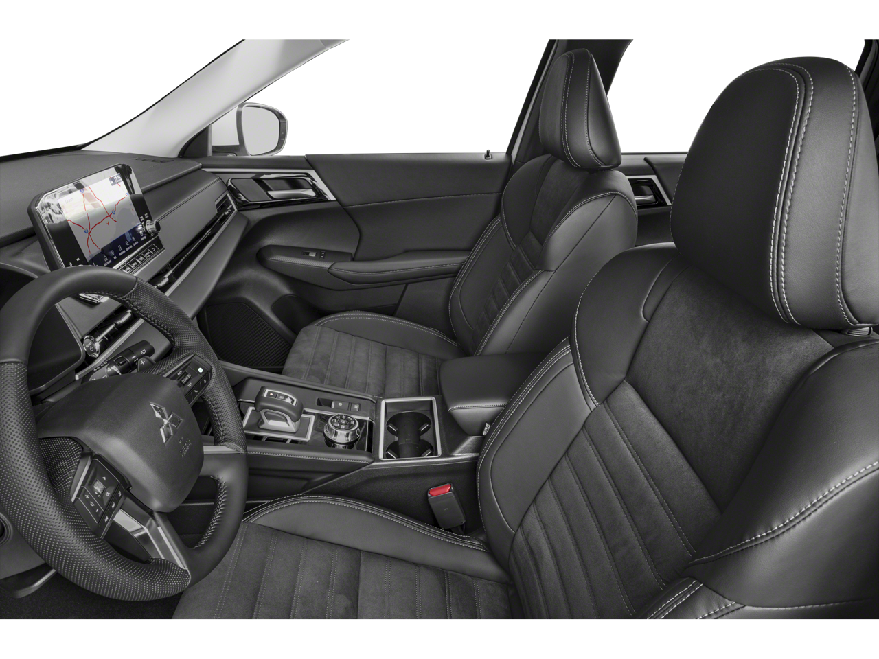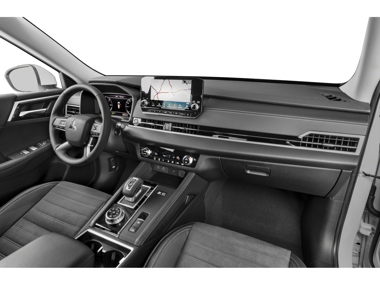 2.4L 4-Cylinder DI DOHC, 3rd row seats: split-bench, 4-Wheel Disc Brakes, 6 Speakers, ABS brakes, Air Conditioning, Alloy wheels, AM/FM radio: SiriusXM, Android Auto & Apple CarPlay, Auto High-beam Headlights, Automatic temperature control, Axle Ratio: TBD, Brake assist, Bumpers: body-color, Driver door bin, Driver vanity mirror, Dual front impact airbags, Dual front side impact airbags, Electronic Stability Control, Emergency communication system: Mitsubishi Connect w/ 24-month trial, Four wheel independent suspension, Front anti-roll bar, Front Bucket Seats, Front Center Armrest w/Storage, Front dual zone A/C, Front fog lights, Front reading lights, Fully automatic headlights, Headlight cleaning, Heated door mirrors, Heated Front Bucket Seats, Heated front seats, Illuminated entry, Knee airbag, Leather Shift Knob, Leather steering wheel, Low tire pressure warning, Navigation System, Occupant sensing airbag, Outside temperature display, Overhead airbag, Overhead console, Panic alarm, Passenger door bin, Passenger vanity mirror, Power door mirrors, Power driver seat, Power Liftgate, Power steering, Power windows, Radio data system, Radio: AM/FM 9 Smartphone Link Display Audio, Rain sensing wipers, Rear anti-roll bar, Rear seat center armrest, Rear side impact airbag, Rear window defroster, Rear window wiper, Reclining 3rd row seat, Remote keyless entry, Security system, Speed control, Speed-Sensitive Wipers, Split folding rear seat, Spoiler, Steering wheel mounted audio controls, Synthetic Leather Seating Surfaces, Tachometer, Telescoping steering wheel, Tilt steering wheel, Traction control, Trip computer, Turn signal indicator mirrors, Variably intermittent wipers, Wheels: 20 Two-Tone Alloy, 2.4L 4-Cylinder DI DOHC.