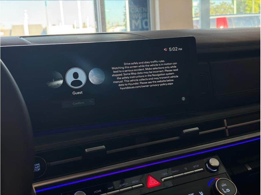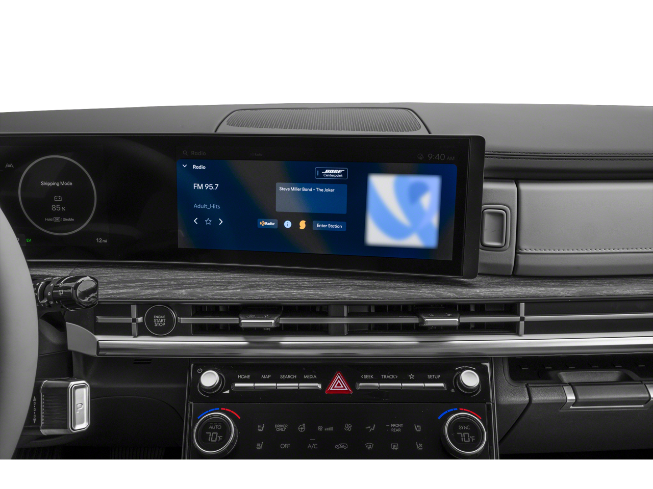 - Radio: AM/FM/HD Bose Premium Audio System -inc: 12 speakers including subwoofer, external amplifier, 12.3" wide touchscreen, wireless Apple CarPlay and Android Auto, Bluetooth® hands-free w/wireless audio streaming, dynamic voice recognition, USB connectivity, SiriusXM, wifi hotspot, Blue Link connected car system, navigation system including traffic flow w/incident data via HD Radio (HERE), OTA updates and rear seat quiet mode